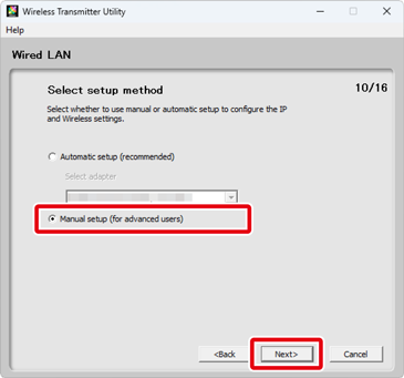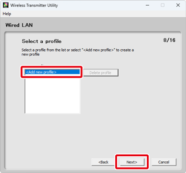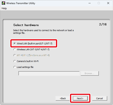 Select Wired LAN (built-in port/UT-1/WT-7) and click Next.