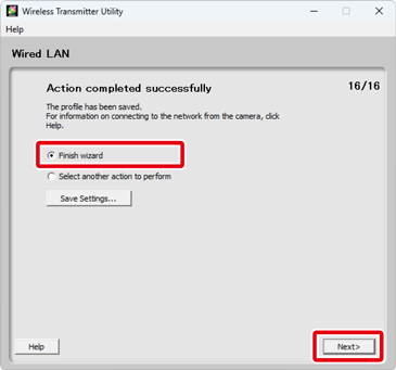 Ethernet (wired LAN) setup is now complete. For information on connecting to the network from the camera, see “Connecting Using Profiles Created on a Computer”.