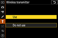 Highlight Wireless transmitter and press the multi selector right to view options.