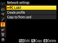 Highlight a profile and press the multi selector right to return to the Network menu.