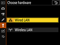 Select Wired LAN/WT > Choose hardware > Wired LAN in the camera setup menu.