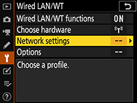 Select Wired LAN/WT > Network settings in the camera setup menu.