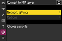 Highlight a profile and press the OK button to return to the Connect to FTP server menu, at which point the camera will initiate a connection to the network.
