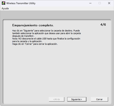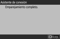 Wireless Transmitter Utility emparejará la cámara y el ordenador automáticamente. Una vez completado el emparejamiento, la cámara y Wireless Transmitter Utility mostrarán los mensajes respectivos; pulse el botón OK de la cámara y haga clic en Siguiente en Wireless Transmitter Utility.