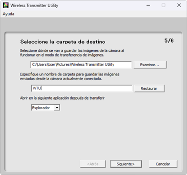 - Windows: \Users\“nombre de usuario”\Pictures\Wireless Transmitter Utility