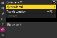 Cree un nuevo perfil de red utilizando Conectar a PC > Ajustes de red en el menú de red.