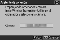 Siga las instrucciones en pantalla para establecer una conexión e iniciar Wireless Transmitter Utility. Wireless Transmitter Utility emparejará automáticamente la cámara con el ordenador.