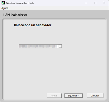 Siga las instrucciones en pantalla para establecer una conexión e iniciar Wireless Transmitter Utility. Cuando se le solicite, elija un adaptador de LAN inalámbrica desde el menú desplegable en Wireless Transmitter Utility.