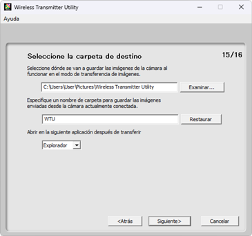 - Windows: \Users\“nombre de usuario”\Pictures\Wireless Transmitter Utility