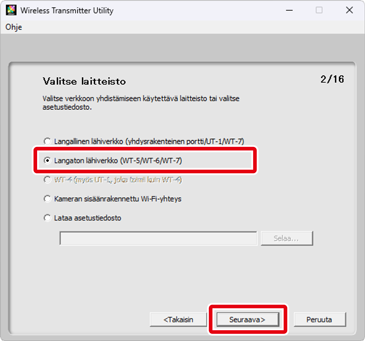 Valitse Langaton lähiverkko (WT-5/WT-6/WT-7) ja napsauta Seuraava.