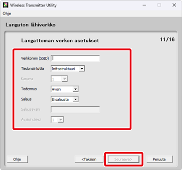 Napsauta kohtaa Seuraava, kun Wireless Transmitter Utility käynnistyy.