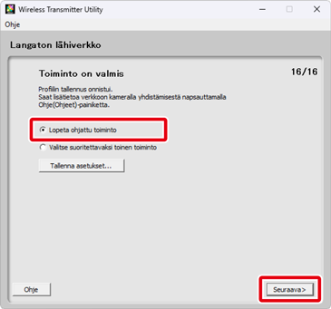 Valitse Lopeta ohjattu toiminto ja napsauta Seuraava.
