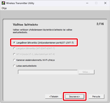Valitse Langallinen lähiverkko (yhdysrakenteinen portti/UT-1/WT-7) ja napsauta Seuraava.