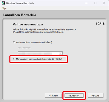 Valitse Manuaalinen asennus (vain kokeneille käyttäjille) ja napsauta Seuraava.