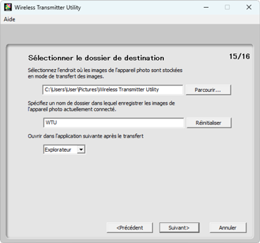 - Windows : \Users\"nom de l’utilisateur"\Pictures\Wireless Transmitter Utility