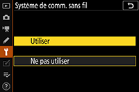 Mettez en surbrillance Réseau sans fil et appuyez à droite du sélecteur multidirectionnel pour revenir au menu Système de comm. sans fil (WT-7).
