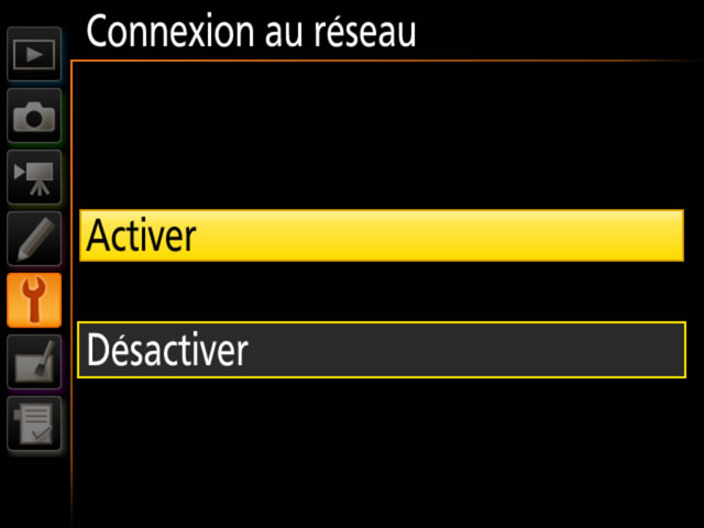 Mettez en surbrillance Activer et appuyez à droite du sélecteur multidirectionnel pour vous connecter au réseau.