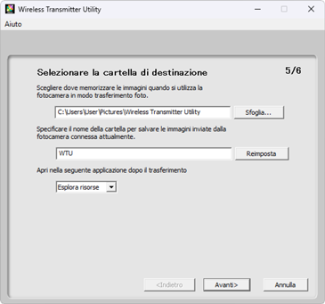 - macOS: /Users/“nome utente”/Pictures/Wireless Transmitter Utility