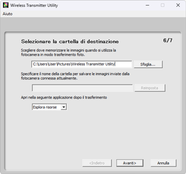 - Windows: \Users\“nome utente”\Pictures\Wireless Transmitter Utility