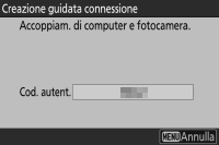 Annotare il codice di autenticazione visualizzato sul monitor della fotocamera.