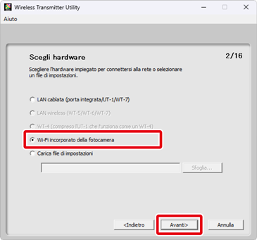 Selezionare Wi-Fi incorporato della fotocamera e fare clic su Avanti.