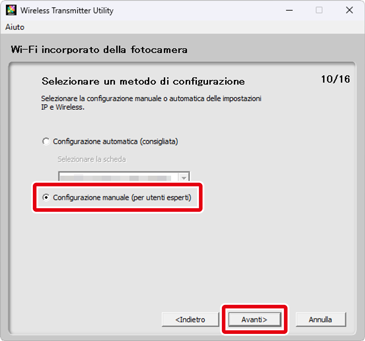 Selezionare Configurazione manuale (per utenti esperti) e fare clic su Avanti.