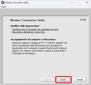 Fare clic su Avanti una volta avviata la Wireless Transmitter Utility.