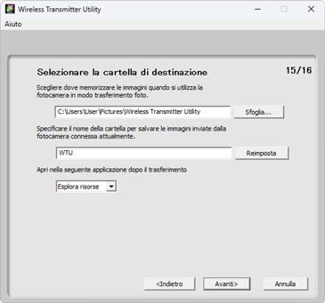 - Windows: \Users\“nome utente”\Pictures\Wireless Transmitter Utility