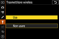 Selezionare Trasmettitore wireless e premere il multi-selettore a destra per visualizzare le opzioni.
