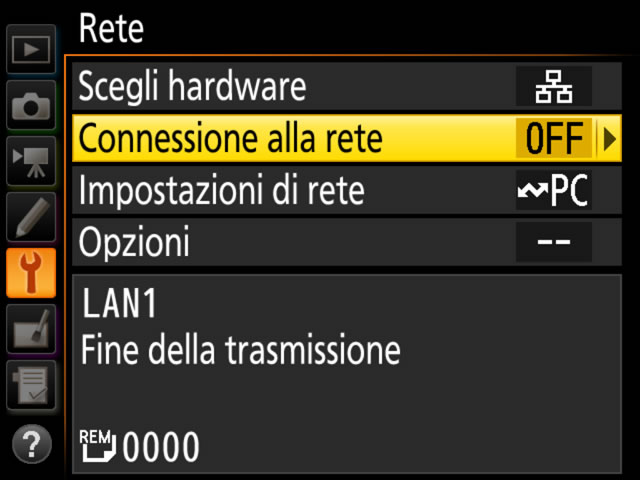 - Z9: selezionare OFF per LAN cablata nel menu di rete della fotocamera.