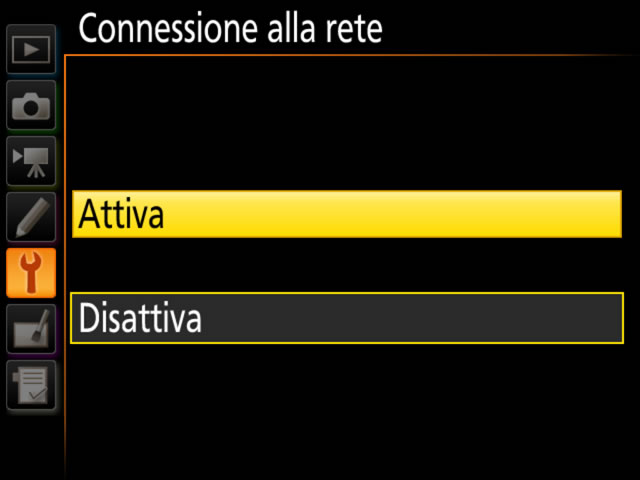 Selezionare Attiva e premere il multi-selettore a destra per collegarsi alla rete.
