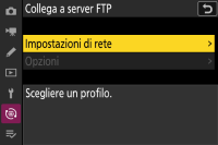 Selezionare Collega a server FTP > Impostazioni di rete nel menu di rete della fotocamera.