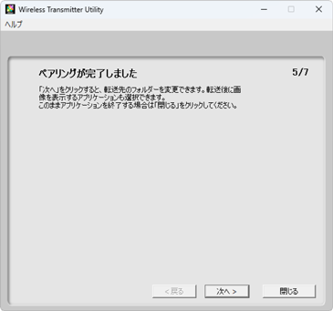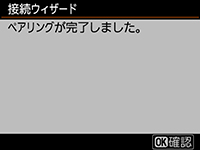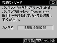 Wireless Transmitter Utilityが自動的にパソコンとカメラのペアリングを行います。ペアリングが完了すると、カメラの画像モニターとWireless Transmitter Utilityの画面がペアリング完了の表示に変わります。