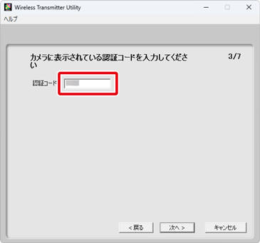 カメラに表示されている認証コードをWireless Transmitter Utilityに入力する