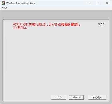 Wireless Transmitter Utilityはカメラでの設定を行ってから起動してください。カメラの設定前に起動していた場合は、[キャンセル]をクリックして一度終了させてください。