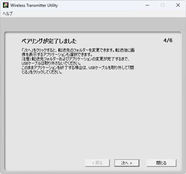 - Wireless Transmitter Utilityが自動的にパソコンとカメラのペアリングを行います。
