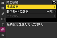 カメラのネットワークメニューの[PCと接続]→[接続設定]で新規接続設定を作成する