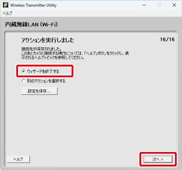 [ウィザードを終了する]を選択し、[次へ]をクリックする
