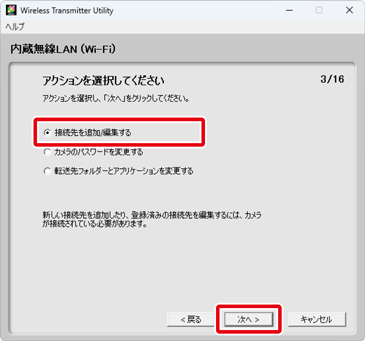 [接続先を追加/編集する]を選んで、[次へ]をクリックする