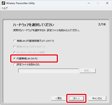 [内蔵無線LAN(Wi-Fi)]を選んで[次へ]をクリックする