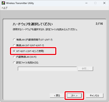 [WT-4/UT-1(WT-4として使用)]を選んで[次へ]をクリックする