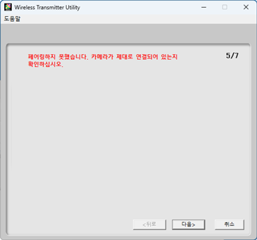 Wireless Transmitter Utility는 카메라와 컴퓨터를 자동으로 페어링합니다. 페어링이 완료되면 카메라와 Wireless Transmitter Utility에 해당 메시지가 표시됩니다. 카메라에서 OK 버튼을 누르고 Wireless Transmitter Utility에서 다음을 클릭하십시오.