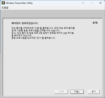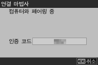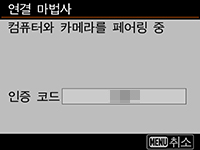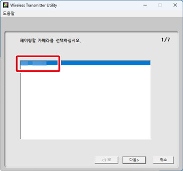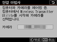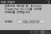화면상의 설명에 따라 연결을 설정하고 Wireless Transmitter Utility를 시작합니다. Wireless Transmitter Utility가 카메라와 PC를 자동으로 페어링합니다.