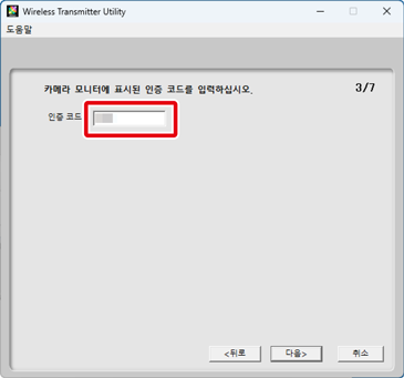 Wireless Transmitter Utility에 인증 코드를 입력하고 다음을 클릭합니다.
