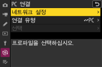 네트워크 메뉴에서 PC 연결 > 네트워크 설정을 사용하여 새 네트워크 프로파일을 생성합니다.