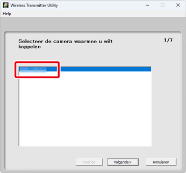Klik, nadat u hebt gecontroleerd of de cameranaam zoals getoond in stap 1 is vermeld, op Volgende.