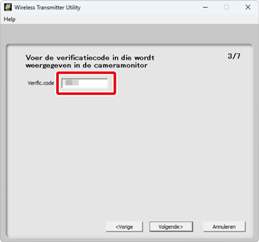 Voer de verificatiecode in de Wireless Transmitter Utility in en klik op Volgende.