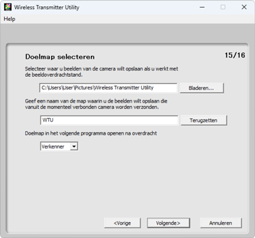 - Windows: \Users\“gebruikersnaam”\Pictures\Wireless Transmitter Utility