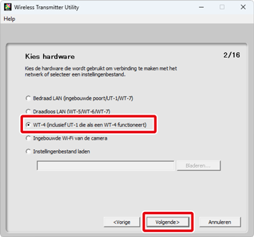 Selecteer WT-4 (inclusief UT-1 die als een WT-4 functioneert) en klik op Volgende.