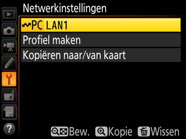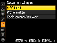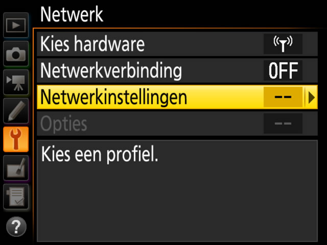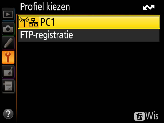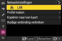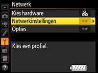 Markeer een profiel en druk de multi-selector naar rechts om terug te keren naar het menu Netwerk.